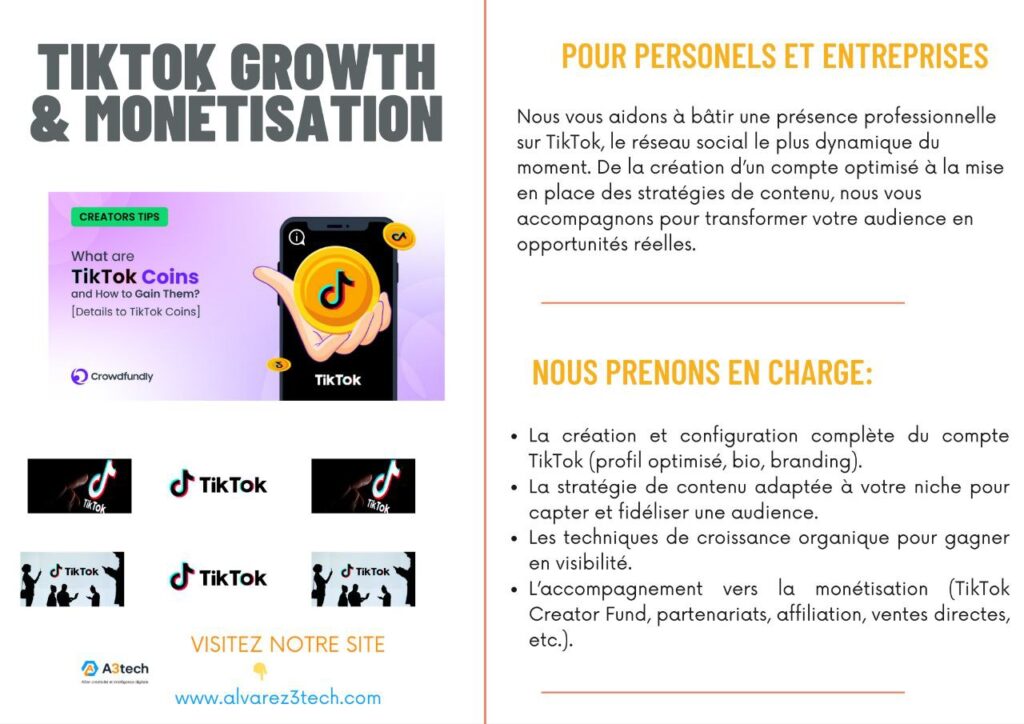 • L’accompagnement vers la monétisation (TikTok Creator Fund, partenariats, affiliation, ventes directes.