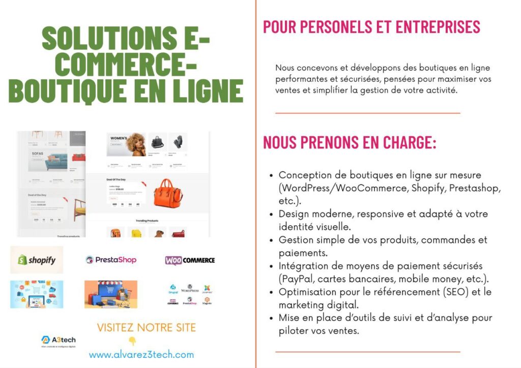 Nos solutions e-commerce incluent: